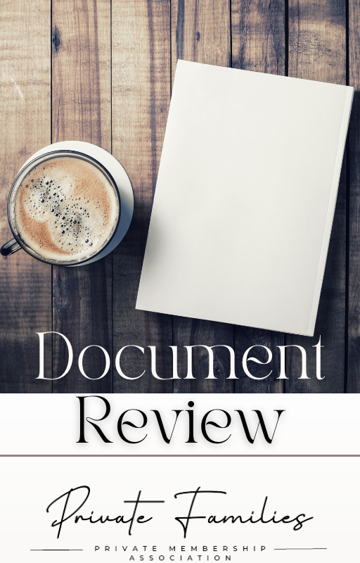 When you choose to engage my services for document review, editing, advisory work and pay your fee, you become a member of our Private Membership Association (PMA) known as 'Private Families and agree to all terms and conditions found within the member agreement.